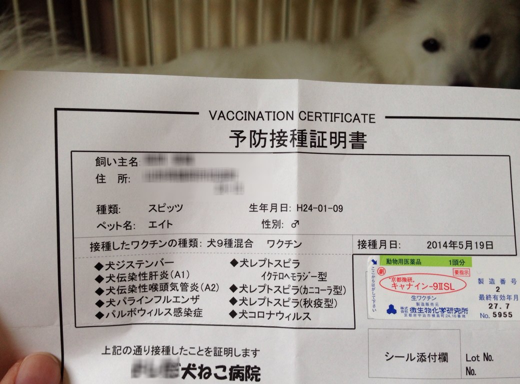 昨日、動物病院で混合ワクチン打ってきました。
